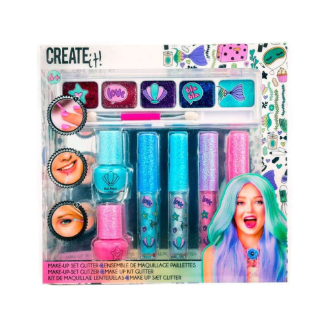 Változz át igazi sellőlánnyá! A Create it! sellő sminkkészlet segítségedre lesz abban, hogy elkészítsd saját sellő sminkedet. A sokszínű kollekció teljesen fel van szerelve ahhoz, hogy víz alatti szépségként tudj tündökölni, amikor csak szeretnél. A 4 db szájfénynek köszönhetően könnyen megtalálhatod kedvencedet, vagy akár kombinálhatod is a színeket. A szemhéjpalettával pedig csodálatos hableányos sminket tudsz készíteni. A kollekcióban található szám
