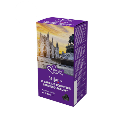 Fedezd fel az Italian Coffee Milano intenzív, mégis kiegyensúlyozott ízvilágát! Ez a 70% robusta és 30% arabica keverék testes, diós jegyekkel kényeztet, és tökéletesen kompatibilis a Cremesso® és Delizio® kávégépekkel.