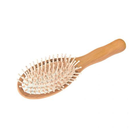 Környezetbarát ovális hajkefe fa nyéllel és fa sörtékkel. A műanyag változatok kiváltására alkalmas. 100% műanyagmentes termék