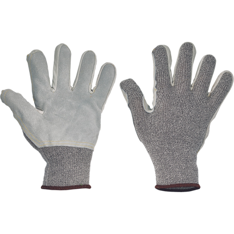 CROPPER MASTER kesztyű, kötött szin. 10 • kötött, varratmentes védőkesztyű E szintű vágásvédelemmel, módosított üvegszál, spandex és nylon felhasználásával, marhabőrrel erősített tenyérrel és ujjakkal•