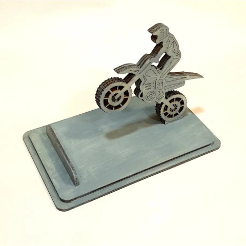 1 kép Crossmotoros telefontartó, acélkék. Mérete: 16x10x10,5 cm