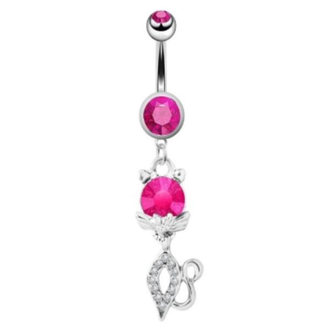 Divatos és elegáns csajos acél köldök piercing rózsaszín-fehér strasszkövekkel. Tartós, higiénikus, nőies kiegészítő mindennapi és alkalmi viselethez