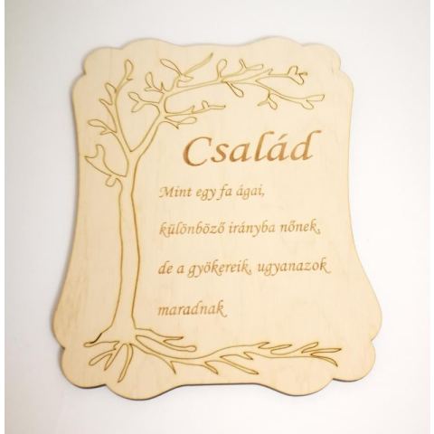 Rétegelt lemezből készült fa tábla. Ideális ajándék csak úgy, szeretteinknek. Mérete kb. 20 x 15,5 cm. Gravírozott Fa Tábla - Családi Idézettel Fedezze fel a család fontosságát e gyönyörűen gravírozott fa táblával, amely tökéletes kiegészítője lehet