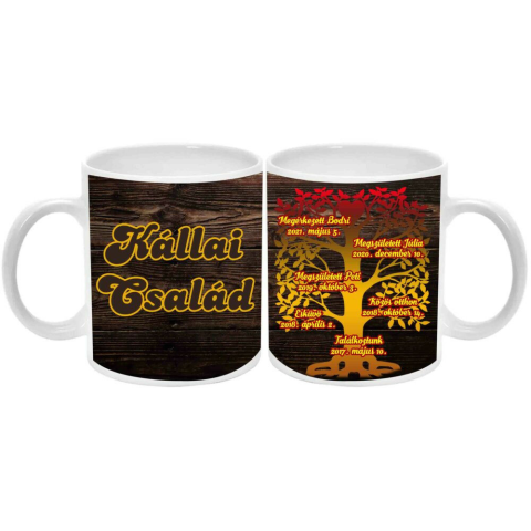 Tedd fel kérdésed a(z) Családfa kétoldalas mintás bögre, 1 db, egyedi felirattal (2) termékről!