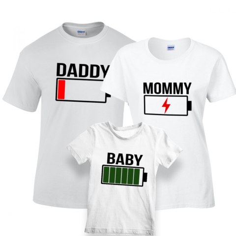 Vicces póló szett, családi energia. Humoros és találó családi pólószett tökéletesen visszaadja a hétköznapi valóságot: egy kisgyermek mellett a szülők energiája gyakran lemerülőben van, míg a gyerek még mindig teljes lendülettel pörög. A pólók mintája ját