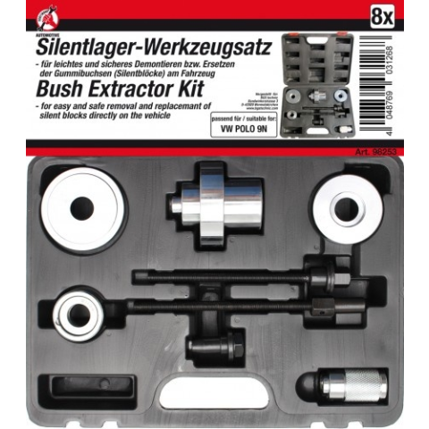 Ideális az elülső lengőkarok csapágyperselyeinek egyszerű és biztonságos eltávolításához és cseréjéhez;Gyorsabb munkavégzés, mivel a lengőkar kiszerelése nem szükséges.A készlet tartalma:S45C szénacél menetes orsó, menetes orsó hosszabbító, menetes or