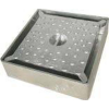 Alumínium csatornatönk, padló összefolyó, 135 mm x 135 mm-es méretben. Fürdők, konyhák, zuhanyzók, húsüzemek vízelvezető rendszeréhez illeszthető. A csonk külső átmérője 50 mm, magassága 90 mm, súlya 1,3 kg.