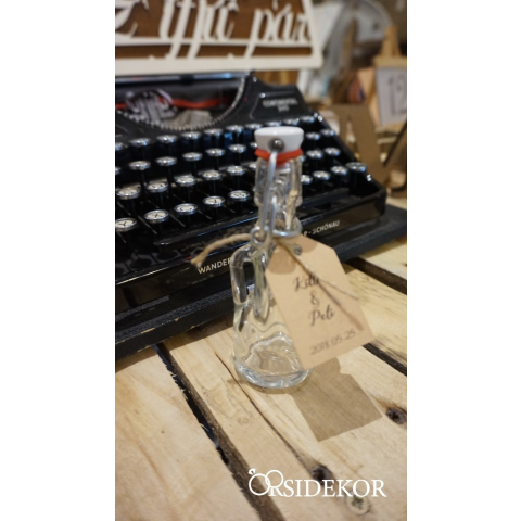 Csatos pálinkás üveg Ezt az üvegcsét üresen kapod, hogy azzal tölthesd meg vendégeid számára, amivel csak szeretnéd. Elsősorban pálinkát vagy magvakat ajánlunk hozzá, de a fantáziádra van bízva, hogy miből lesz köszönetajándék. Mérete:0,04liter Kérhet