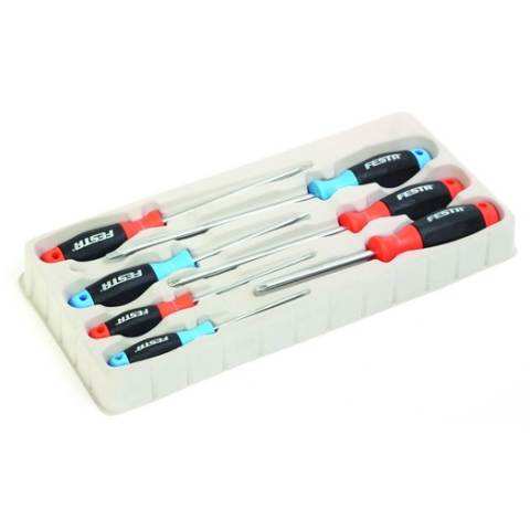 Csavarhúzó készlet 6 db 18403 - Anyaga: acél és mûanyag - Tartalma: 1db 3×75-as, 1 db 5×100-as, 1db 6×150-es lapos csavarhúzó, illetve 1 db 0×75mm-es, 1 db 1×75 mm-es, 2×100 mm-es csillagcsavarhúzó (PH) - Különösen ellenálló Króm-vanádium ötvözetû acél pengék - Csúszásmentes bimateriális nyél