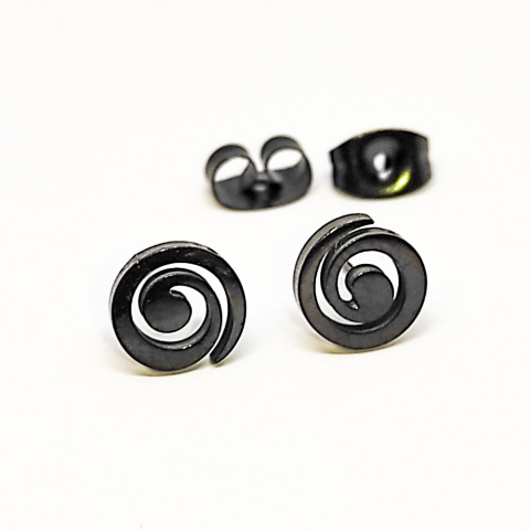 Csavaros nemesacél fülbevaló, fekete színű