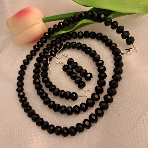 Egyszerű, de elegáns ékszerek kedvelőinek ajánlom ezt az extrán kidolgozott csiszolt üveg szettet. Hozzá illő fülbevalóval. Szélesség: 0,8 cmHosszúság: 70 cm
