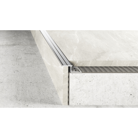 Eloxált felületű élvédő lépcsők szegélyének védelmére,lezárására.
