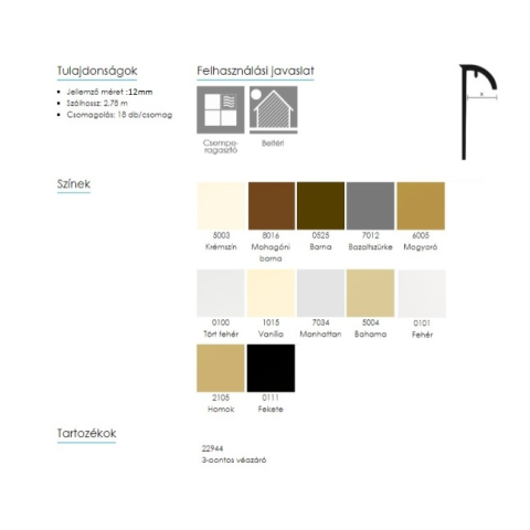 Különböző színekben kapható műanyag élvédő burkolatok lezárásához.