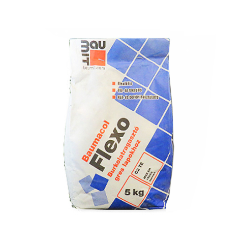 Baumit Baumacol Flexo 5 kg Burkolatragasztó gres lapokhoz Cementbázisú, víz- és fagyálló, flexibilis, vékonyágyas burkolatragasztó anyag, csempék és mázas kerámialapok, greslapok, kőporcelánlapok és mozaikok ragasztására fokozottabb igénybevételű alapfelü