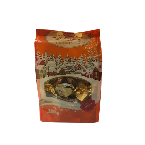 Csengettyű prémium szaloncukor hozzáadott cukormentes 350 g Prémium minőségű cukormentes szaloncukor. Összetevők: maltitol, zsíros tejpor, növényi zsír, kakaóvaj, sovány tejpor, kakaómassza, tejzsír, szójalecitin, aromák. Átlagos tápérték 100 g-ban: