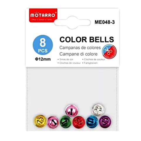 Csengő, vegyes színek (csengettyű). A csomag 8 db vegyes színű csengettyűt tartalmaz. Dekorációs és kreatív célokra ajánljuk, a karácsonyi alkotások elengedhetetlen kelléke.