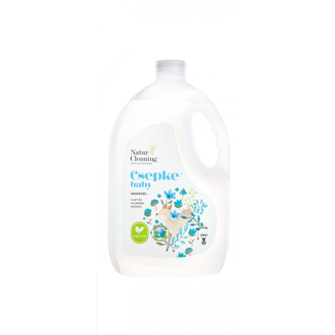 Csepke Baby Mosógél Illat és allergénmentes 0% allergén, Fehér és színes kismama és babaruhákhoz - Green Brand díjas termék. -Biztonságosan alkalmazható kismama és babaruhákhoz, mosható pelenkákhoz, -Vegán, Állatkísérlet mentes, Parabénmentes, - Aller