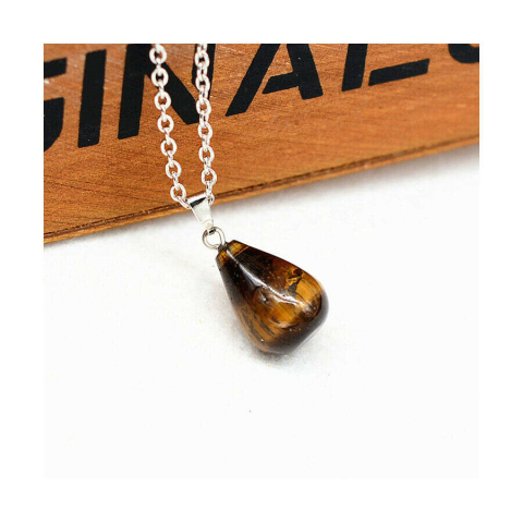 Csepp alakú természetes kőből készült nyaklánc - barna cirmos