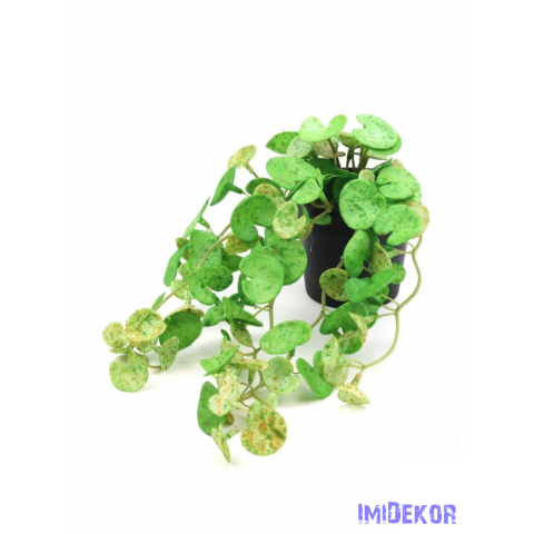 Élethű tapintású 27cm-re csüngő zöld növény, 9x8cm cserépben.