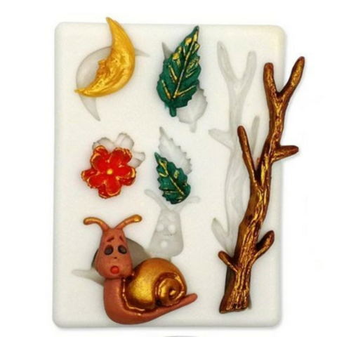 Csiga fondant forma, szilikon, 7×9,5 cm A szilikonformával 3D csiga és kisebb forma (levél, faág, hold) készíthető. Rugalmas, tapadásmentes szilikonanyagból készült. Készíthető benne fondantból, marcipánból és csokoládéból is forma. Mérete: kb. 7 x 9,5