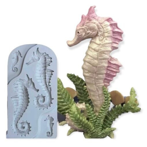 A szilikon forma 4 részből áll, mellyel különböző méretű tengeri csikóhalat lehet készíteni. A fondant mintázó mérete: – A fondant mintázó teljes mérete: 6 x 11.5 cm – A mintázó vastagsága: 1 cm – A figurák mérete: 3 x 1 cm, 8.3 x 3 cm