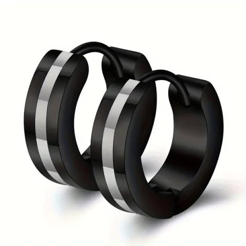 Fekete-ezüst csíkos acél fülbevaló, elegáns és karakteres stílussal. Uniszex, antiallergén kialakítás, prémium minőségű rozsdamentes acélból