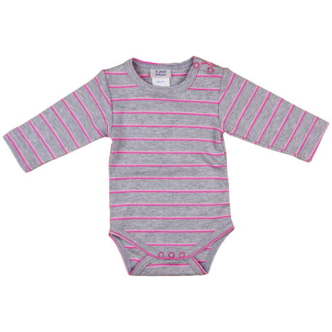 Tedd fel kérdésed a(z) Csíkos pamut vállonpattentos baba body szürke termékről!