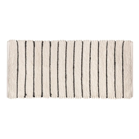 A krémalapot fekete vonalak díszítik. A pamut puhaságot és lágyságot kölcsönöz a szőnyegnek. A csíkos szőnyeg melengető érzést biztosít a talpnak. Ezenkívül a szőnyegek kiválóan szigetelik a zajt,