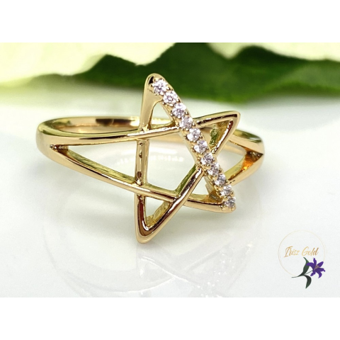 1 kép Csilla antiallergén csillag alakú gyűrű apró kövekkel 18K