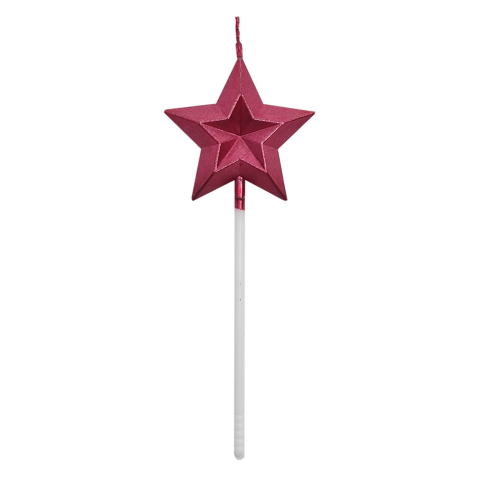 Legyen szó születésnapi tortáról vagy egy meglepetés süteményről, biztosan nagy sikere lesz ennek a bordó színű, csillag alakú gyertyának, mellyel bármilyen egyszerű tortát rögtön ünnepivé varázsolhatunk. Tulajdonságok: Anyaga: viasz és műanyag A csilla