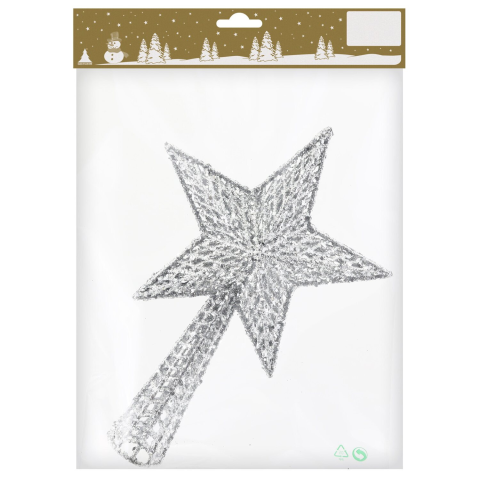 1 kép Csillag alakú műanyag csúcsdísz csillámmal ezüst