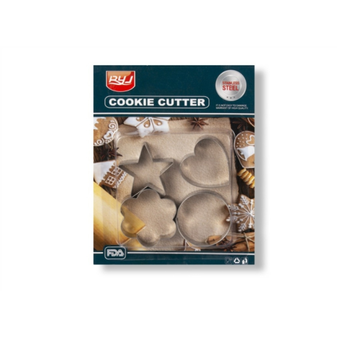 Ez a Csillag, szív, virág és kör alakú 4 részes fém sütikiszúró készlet neked való!