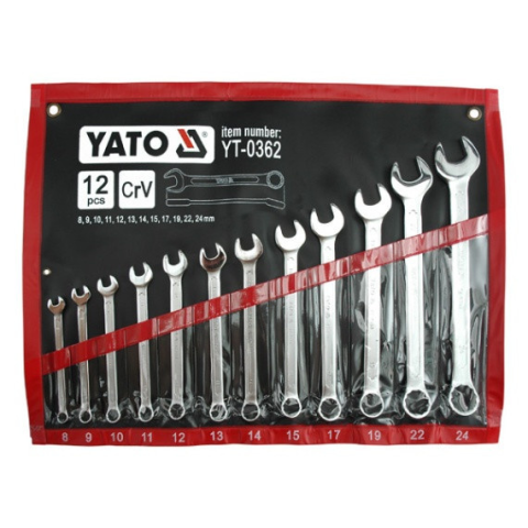 Készlet tartalma: 8; 9; 10; 11; 12; 13; 14 15; 17; 19; 22; 24 mm - Csillag-Villáskulcs Készlet 12 db-os - Anyaga: Cr-Va (Chrome Vanadium) acél ötvözet - DIN 3113 Standard - Hőkezelt, a nagyobb szilárdság és mérettartás érdekében - Krómozott, selyemfényű