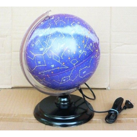 25 cm-es forgatható csillaggömb. Átvilágítva az augusztusi égbolt válik láthatóvá. A földgömb alaphelyzetben a fontosabb csillagászati égöveket jeleníti meg, a lámpa bekapcsolása után politikaivá változik át. Magyar termék!