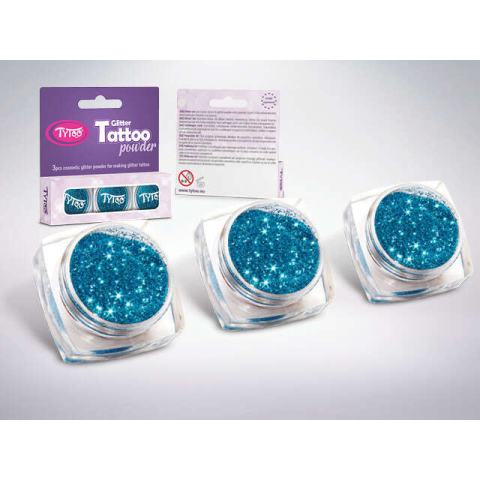 Csillámpor szett 3 x 2,5 ml Türkizkék csillámtetoválás 1 kép