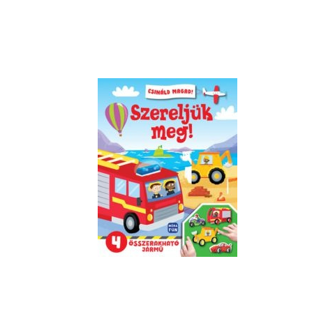 Ejha, az autószerelők ma nagyon elfoglaltak! Segíts Samunak és Sárinak megjavítani a járműveket, majd állítsd össze a saját járgányaidat! Ezzel a négy járművel tudsz utána játszani: tűzoltóautó, versenyautó, motor és kotrógép.