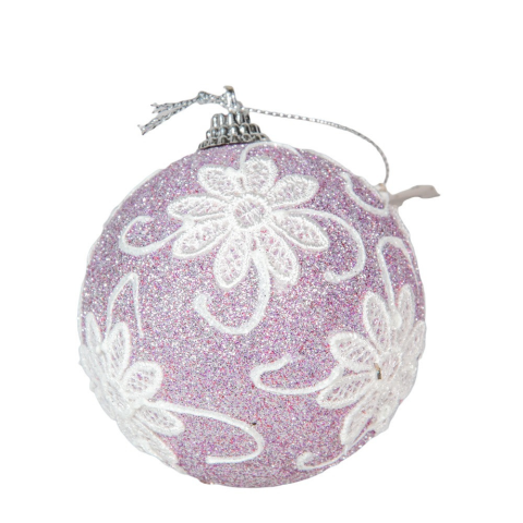 Csipke mintás habgömb fagyos lila 8cm karácsonyfadísz 1 kép
