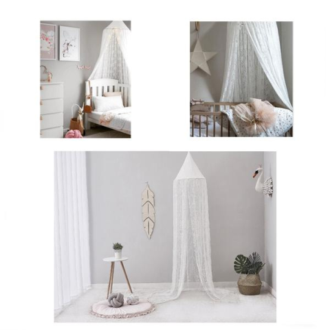 Csipkés baldachin kiságyhoz fehér BAL6- Fehér színű- Népszerű termék a gyermekszoba berendezéséhezMéretek:50 cm átmérő x 270 cmA baldachin remek dekoráció és ebben a formában szúnyoghálóként is használható.A készlet tartalma:- tüll baldachin- fémgyűrű / rögzítő készlet (kétoldalas ragasztószalag a mennyezethez való rögzítéshez, csavarok, kétoldalas ragasztószalag)Fedezd fel kínálatunkat, és válaszd ki a számodra legmegfelelőbb terméket! Rendeld m