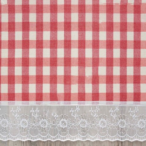 2 kép Csipkeszélű fannel terítő F265 Piros kockás Ovális 132x132