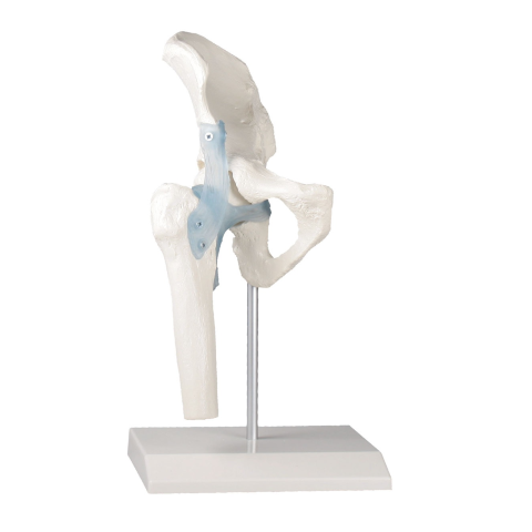 Életnagyságú csípőízület modell ínszalagokkal. Az ínszalagok rugalmas szintetikus anyagból készültek.