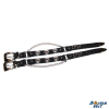 Valódi marhabőr csizmapánt, Western díszekkel, magasfényűre galvanizált acél láncdísszel és csatokkal, végdíszekkel Méret: szélesség: 2,5 cm, teljes hossz 43 cm 33-39 cm közt állítható. 1 pár!