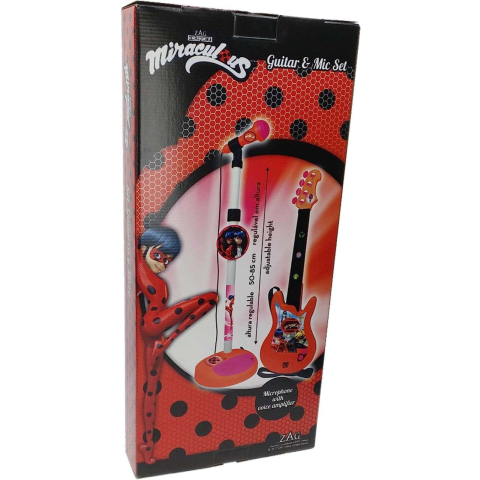 Miraculous játék gitár és mikrofon szett - Katicabogár és Fekete macska, műanyagból készült. Fejleszti a kreativitást, a zenei ritmusérzéket és a kéz-szem koordinációt. Méretek: 34 x 18 x 72 cm Súly: 698 g Ajánlott életkor: 3-9 év 4 darab LR6 AA elem...
