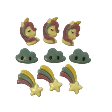 1 kép Csoki dísz - Unikornis-Felhő-Szivárvány (9db)