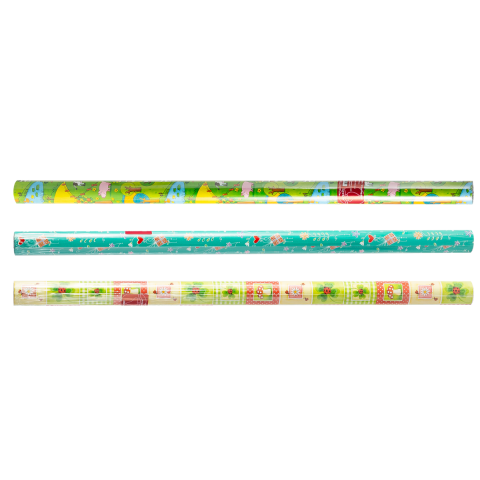 Vegyes mintás díszcsomagoló papír tekercsben.