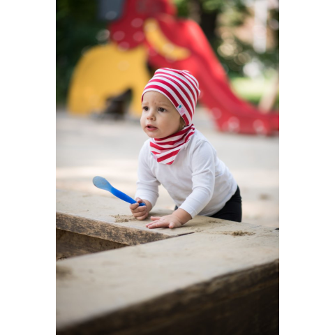 A PeggyBaby csomós sapka fejmérettől és hajhossztól függetlenül kifogástalanul passzol gyermeked fejére, a sapka tetején lévő csomó állítható, igy tökéletesen igazítható. Vagány színekkel, rugalmas pamutanyagból készül. Kellemes