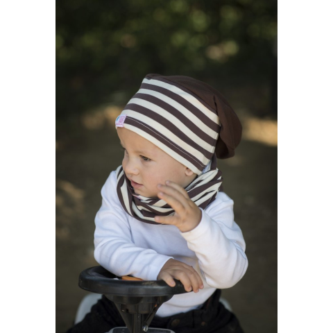 1 kép Csomós sapka, csík, sötétbarna-fehér