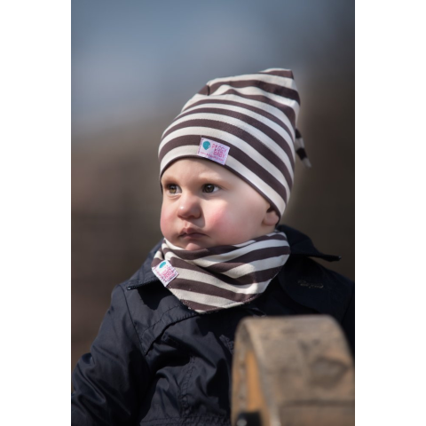 1 kép Csomós sapka, csík, sötétbarna-fehér