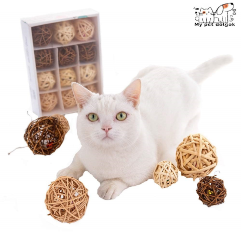 Csörgős rattan labdajáték készlet cicáknak-12db