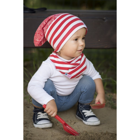 A Peggy Baby csősapka igazi kis vagány megjelenést biztosít a kicsinek. Két, színvilágában összeillő pamutanyag került összedolgozásra. A bund része rugalmasabb pamutból készül, így nem csúszkál a gyermek fején. A sapka úgy is