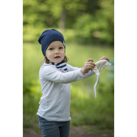 A Peggy Baby csősapka igazi kis vagány megjelenést biztosít a kicsinek. Két, színvilágában összeillő pamutanyag került összedolgozásra. A bund része rugalmasabb pamutból készül, így nem csúszkál a gyermek fején. A sapka úgy is